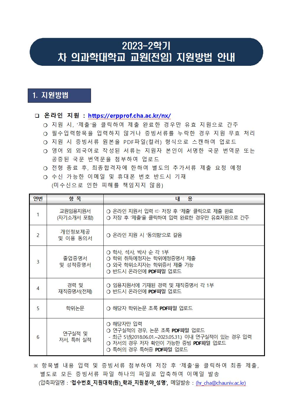 2024-1학기 차의과학대학교 교원 공개채용 공고(임상)
